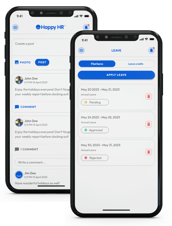 With the Happy App, employees can take control of their day-to-day activities like never before. Say goodbye to scattered documents and disjointed processes. The app offers an end-to-end experience, allowing users to effortlessly access and review important documents such as contracts, policies, position descriptions, manage leave, take part in engagement, messaging & communication and access employee benefits all from the convenience of their mobile or tablet device.