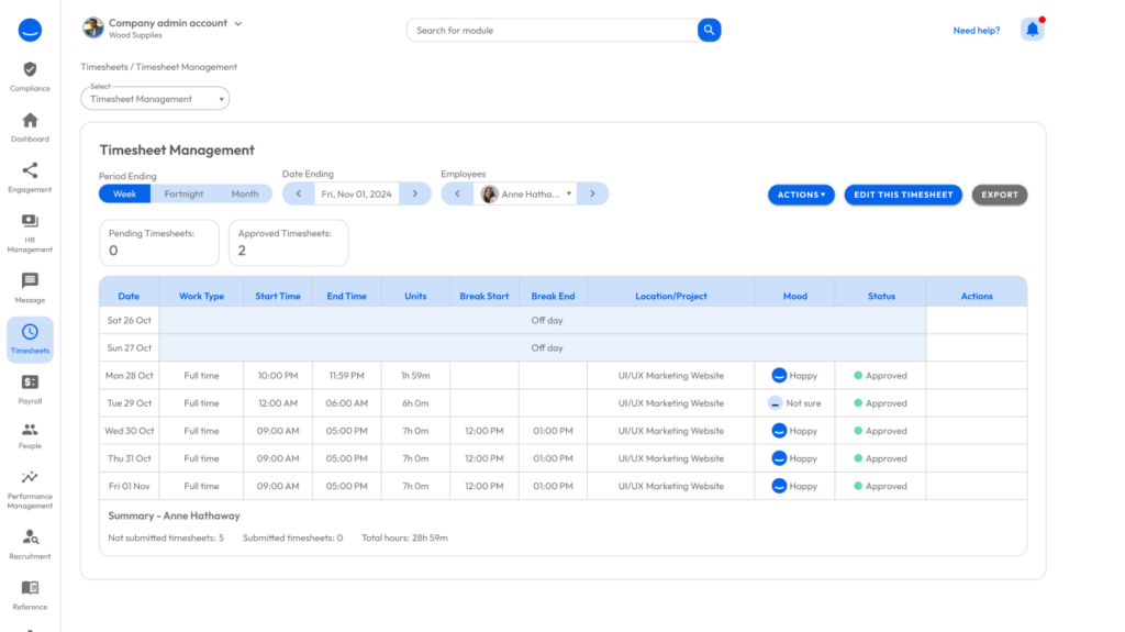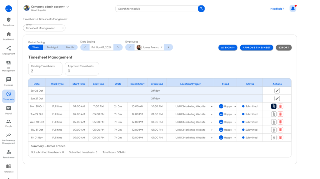 Track clock-ins/outs, breaks, and total hours accurately. Approvals made simple.